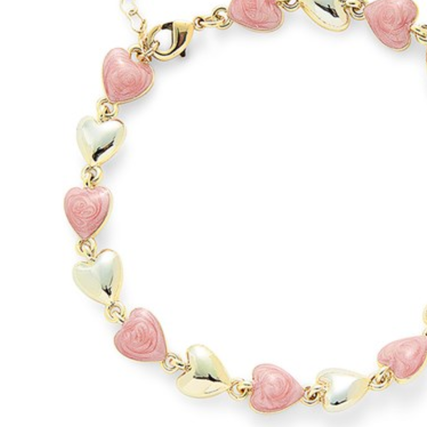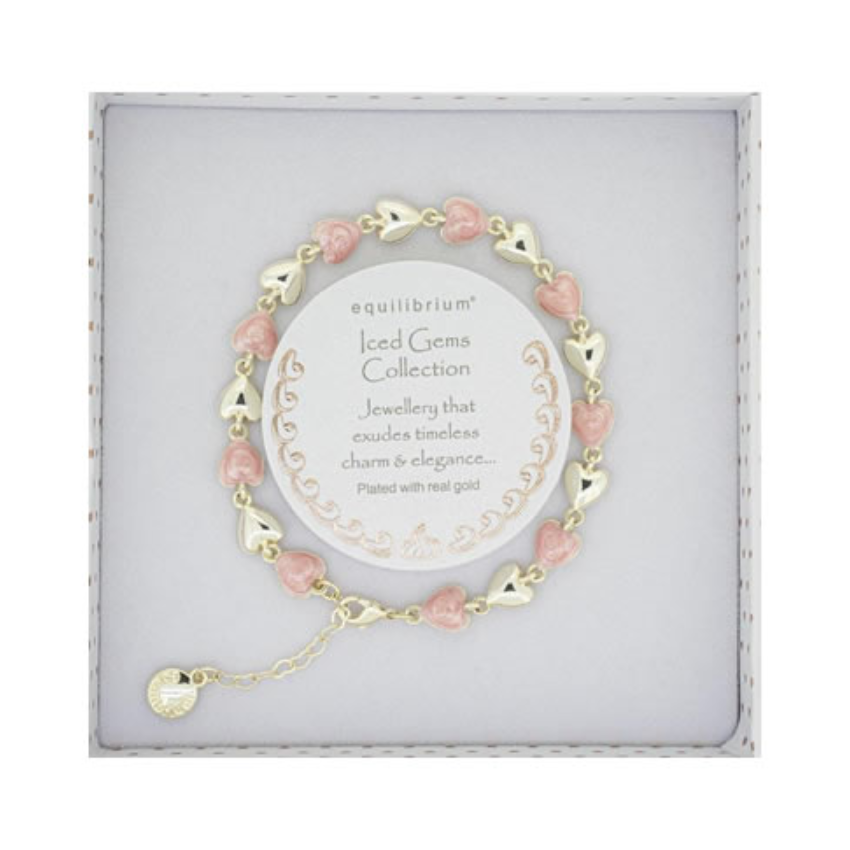 EQUILIBRIUM GOLD PLATED ICED GEM PINK HEARTS BRACELET