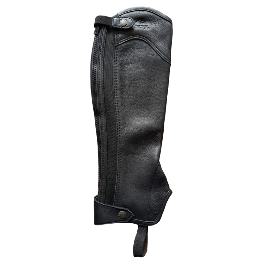 The zip does up from the bottom to the top, so it will not rub your horse’s side when using your leg aids.