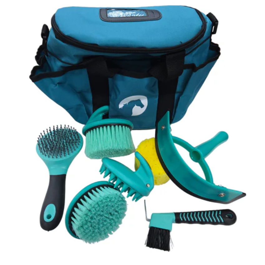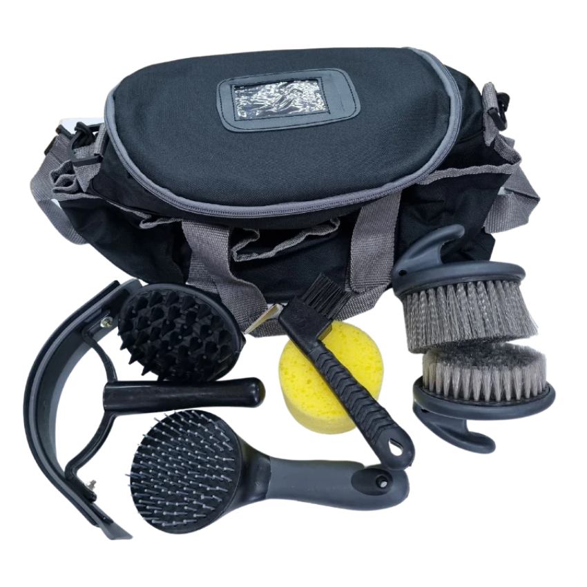 The brushes come in a heavy duty, ripstop tack bag with a zip and an adjustable shoulder strap and hand straps, making it easy to carry and hang up. It also has a clear plastic name holder at the top