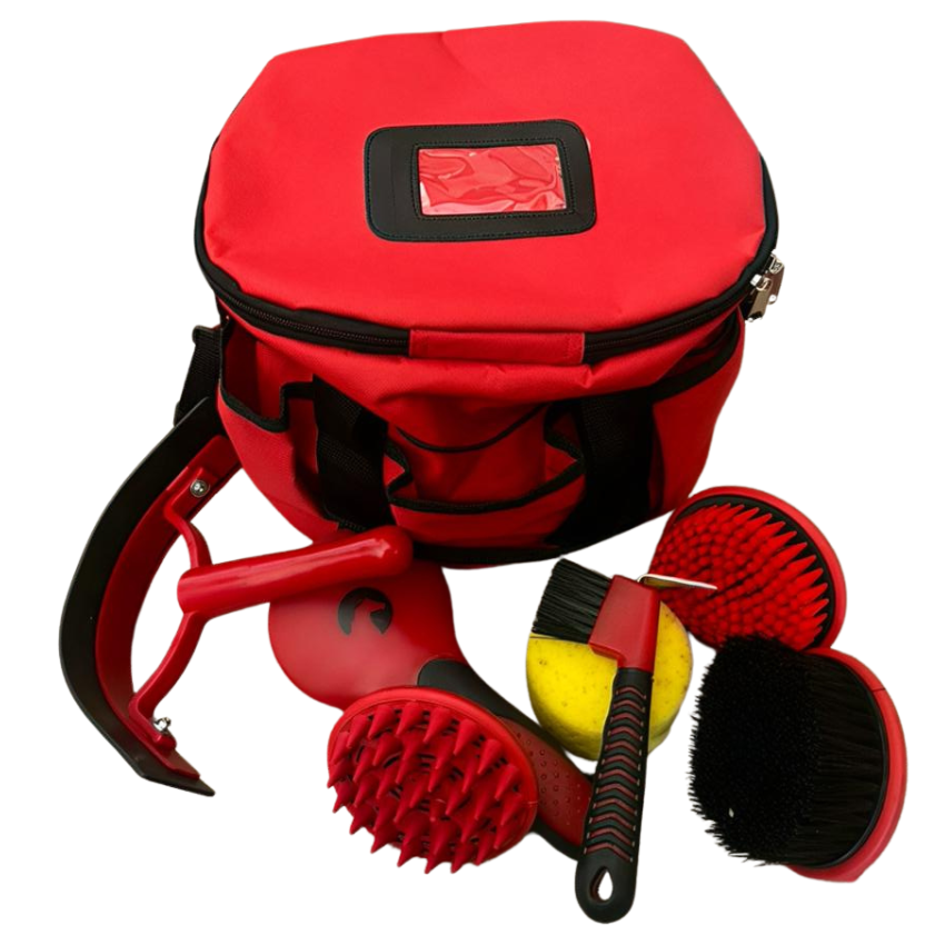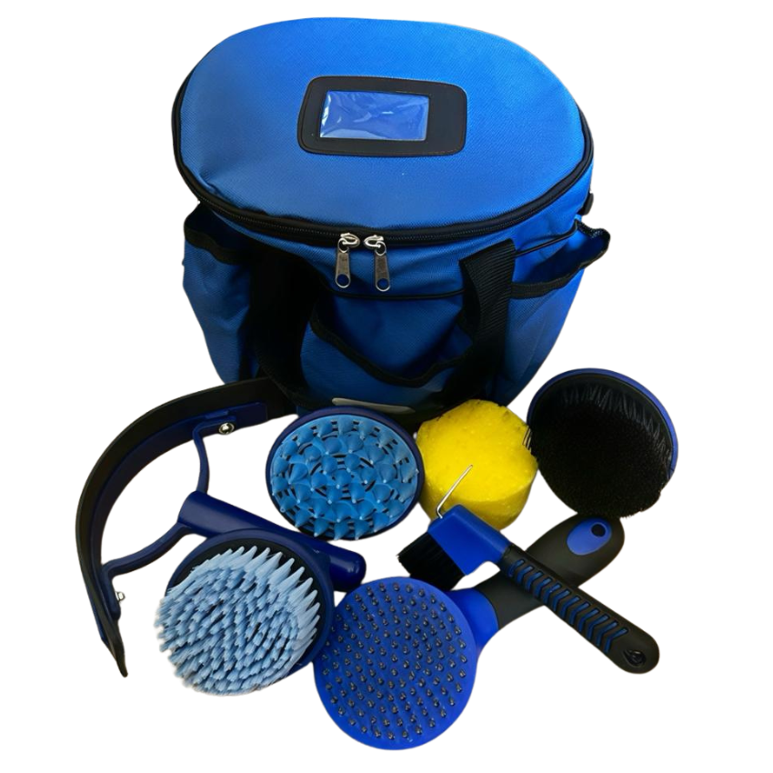 The brushes come in a heavy duty, ripstop tack bag with a zip and an adjustable shoulder strap and hand straps, making it easy to carry and hang up. It also has a clear plastic name holder at the top